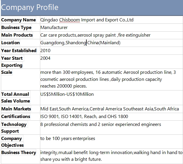 Chisboom er en professionel producent og leverandør af gylden aerosolmaling. Siden oprettelsen har det været dybt elsket af kunder på indenlandske og udenlandske markeder. Som leverandør skal holdbarheden og praktisk af den gyldne aerosolmaling sikres. Chisboom har et professionelt team og komplette faciliteter til at reagere på markedsændringer og opnå kontinuerlig innovation.